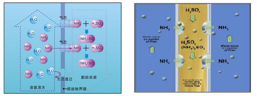 針對(duì)以上氨處理/回用傳統(tǒng)工藝的弊端,源禹環(huán)保自主設(shè)計(jì)和開發(fā)出一種新型的處理工藝---CORLONG?膜法氨氣回收技術(shù)。
