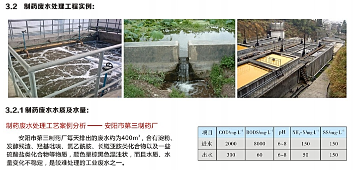 制藥工業(yè)廢水主要包括抗生素生產(chǎn)廢水、合成藥物生產(chǎn)廢水、中成藥生產(chǎn)廢水以及各類制劑生產(chǎn)過程的洗滌水和沖洗廢水四 大類.其廢水的特點(diǎn)是成分復(fù)雜、有機(jī)物含最高、毒性大、色度深和含鹽量高,特別是生化性很差,且間歇排放,屬難處理的工 業(yè)廢水.隨著我國醫(yī)藥工業(yè)的發(fā)展,制藥廢水已逐漸成為宙要的汚染源之一,如何處理該類廢水是當(dāng)今環(huán)境保護(hù)的一個(gè)難題.