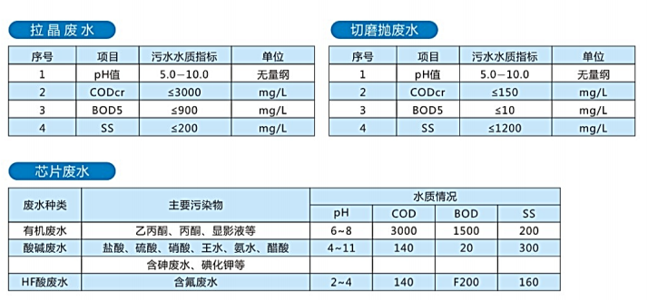 主要污染物:氫氟酸廢水、含酸廢水、含硅粉、切割液(聚乙二醇)廢水.